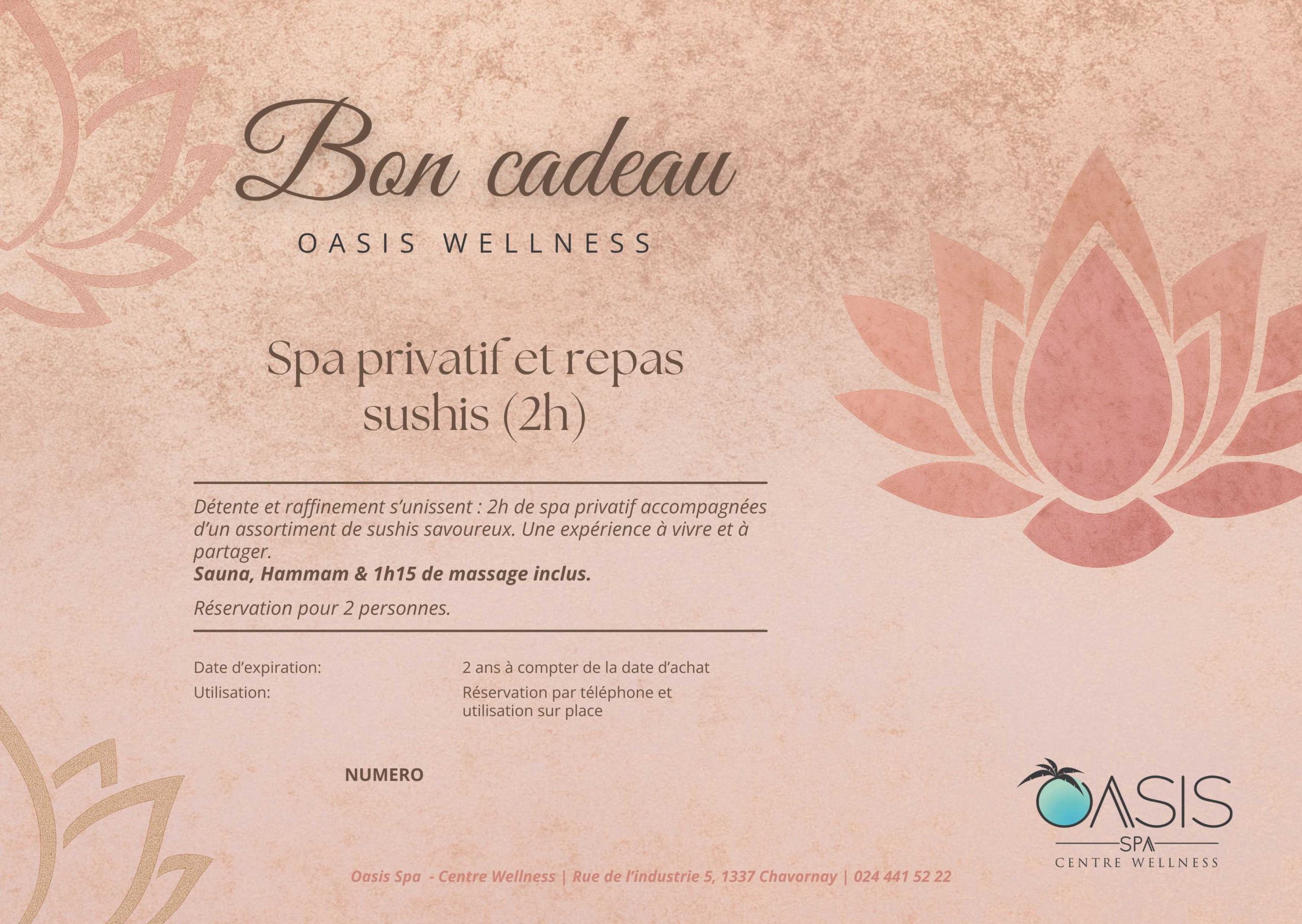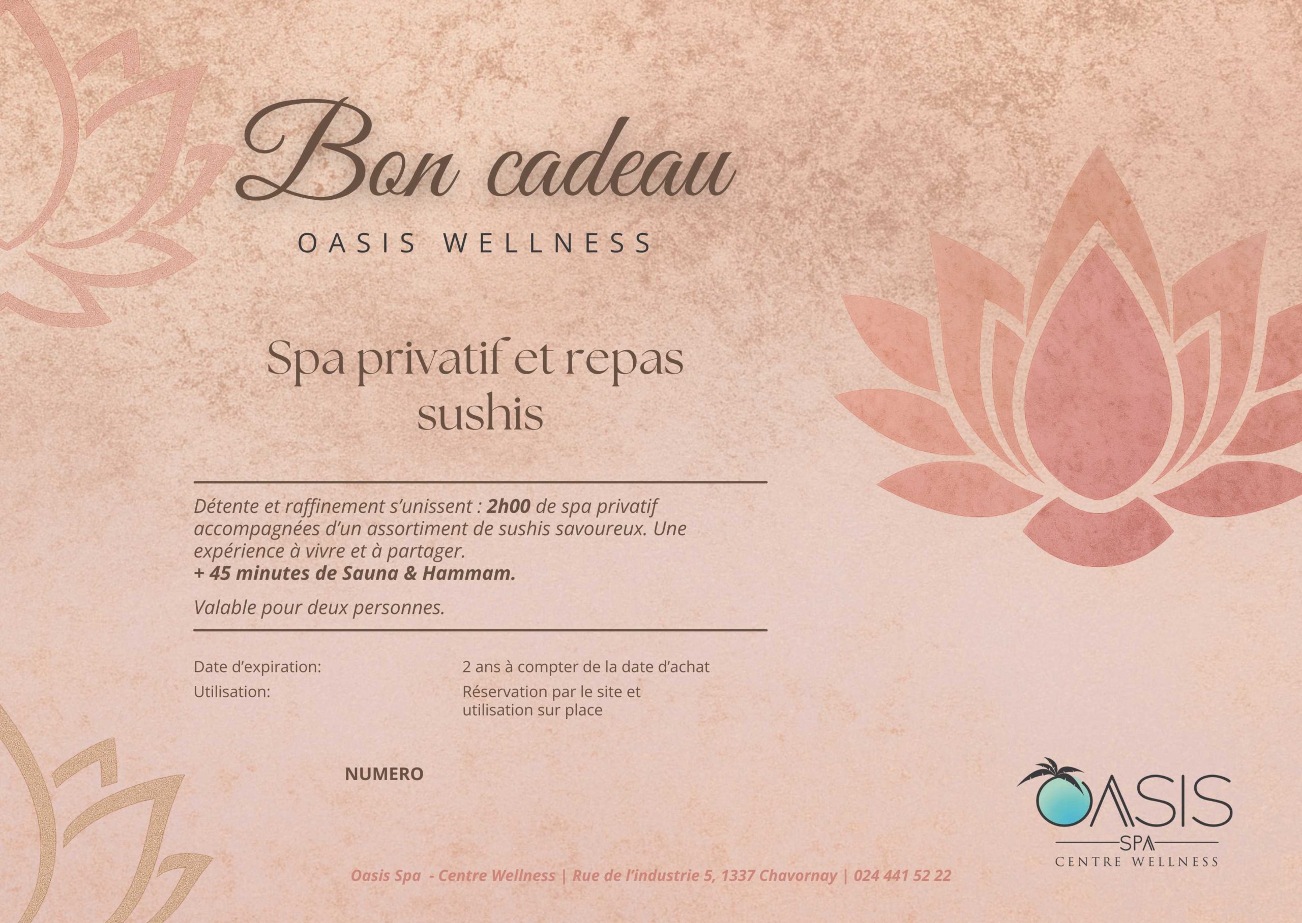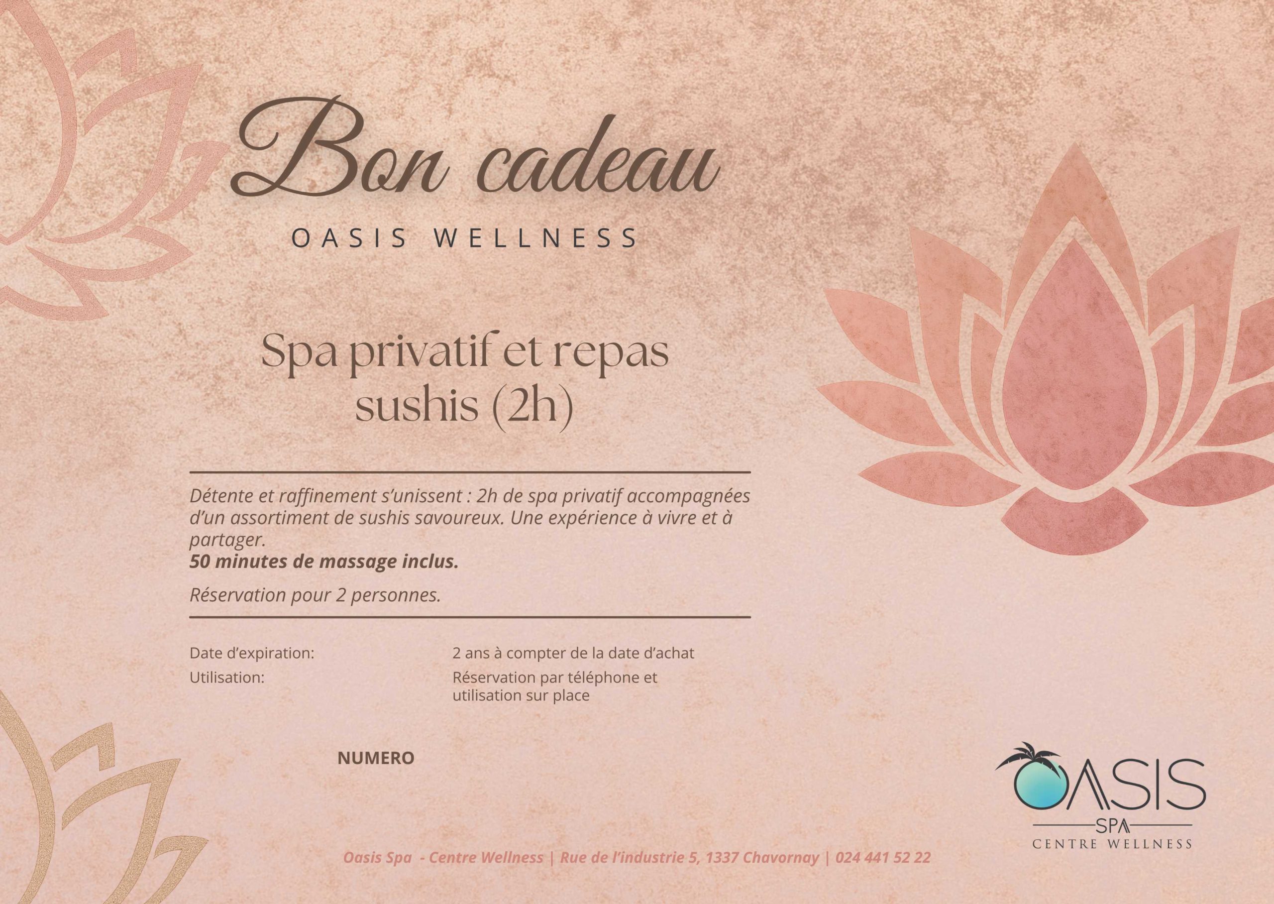 Bon cadeau pour un spa privatif avec Sushis. prix pour 2 pers.